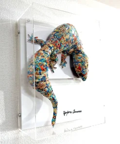 アクリルケースいっぱいになるよう設計いたしましたので、トカゲの躍動感を十二分に感じていただける作品に仕上がりました。