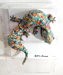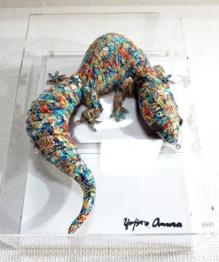 シャカデリックなイメージの仏教画を模した模様とトカゲ本来の表情と重ね合わせたデザインです。表面上は光沢紙の艶のある質感となっております。
