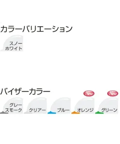 選べるバイザーは、全5色(グレースモーク、クリアー、ブルー、オレンジ、グリーン)