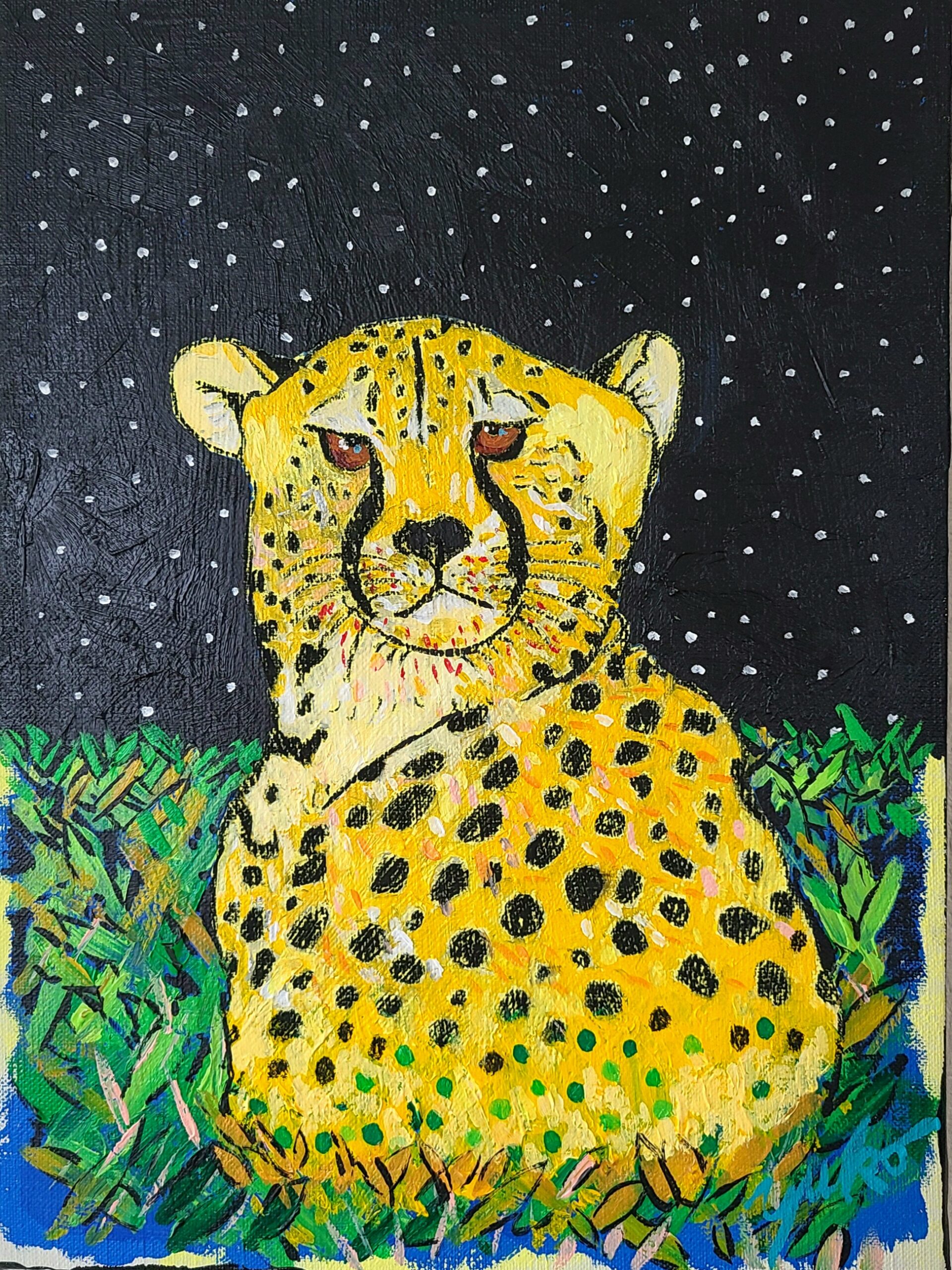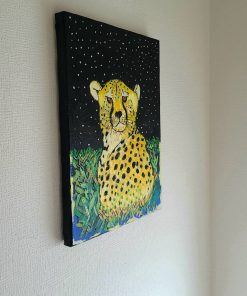 完成後フィキサチーフでスプレー保護した後、グロスバーニッシュ(Liquitex)を3~5回塗り重ね、艶出ししています。