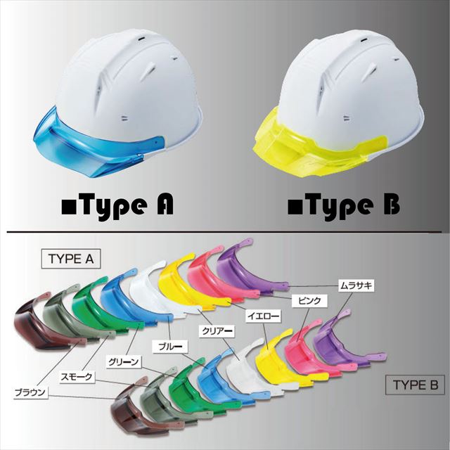 透明バイザーの形状は2種類あり、カラーリングはそれぞれ8色あります。