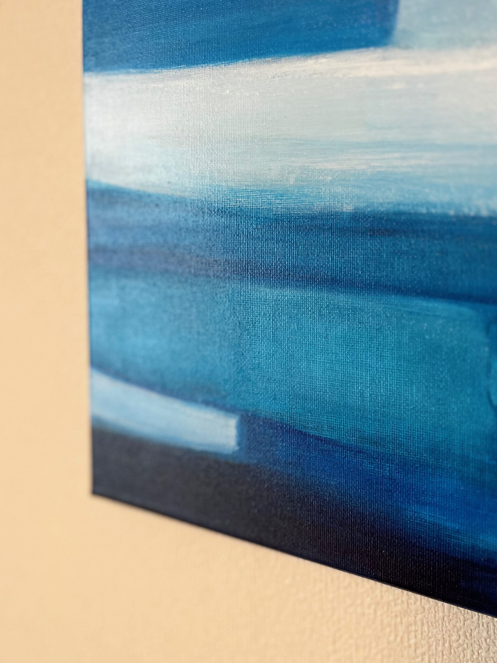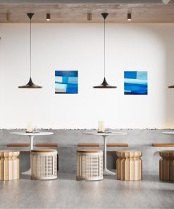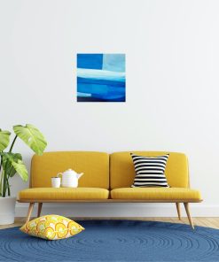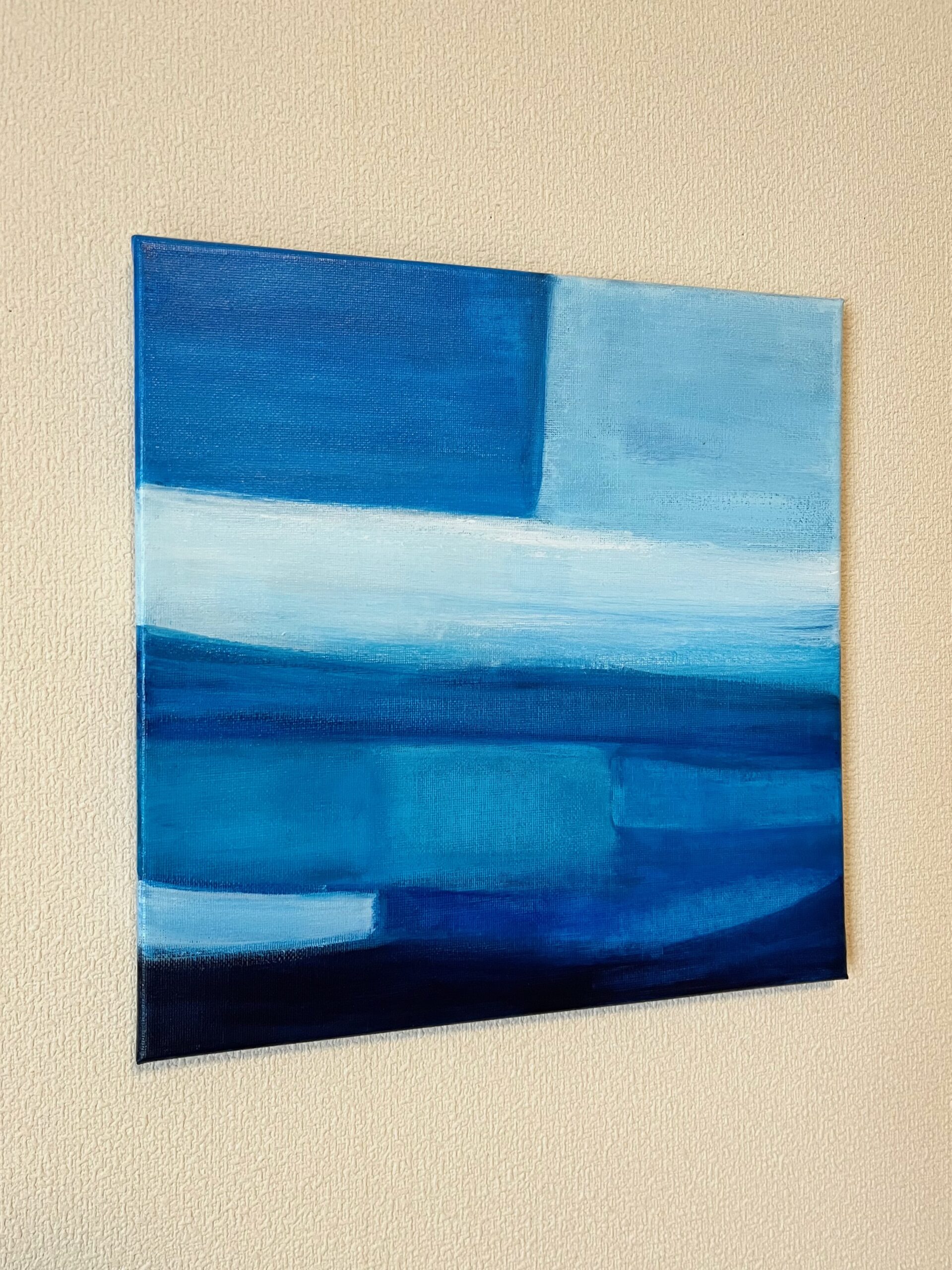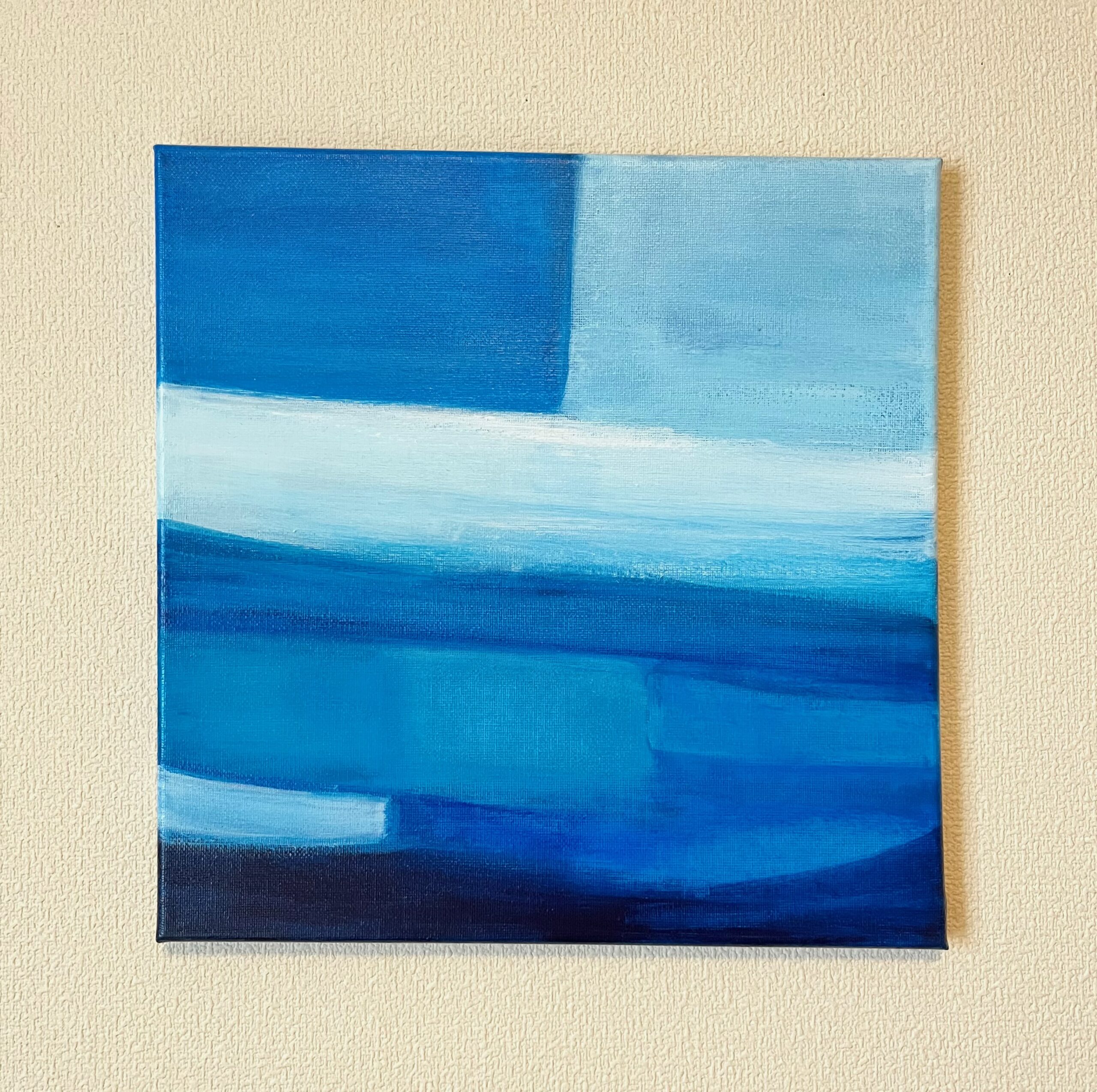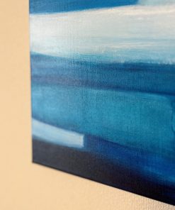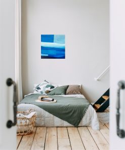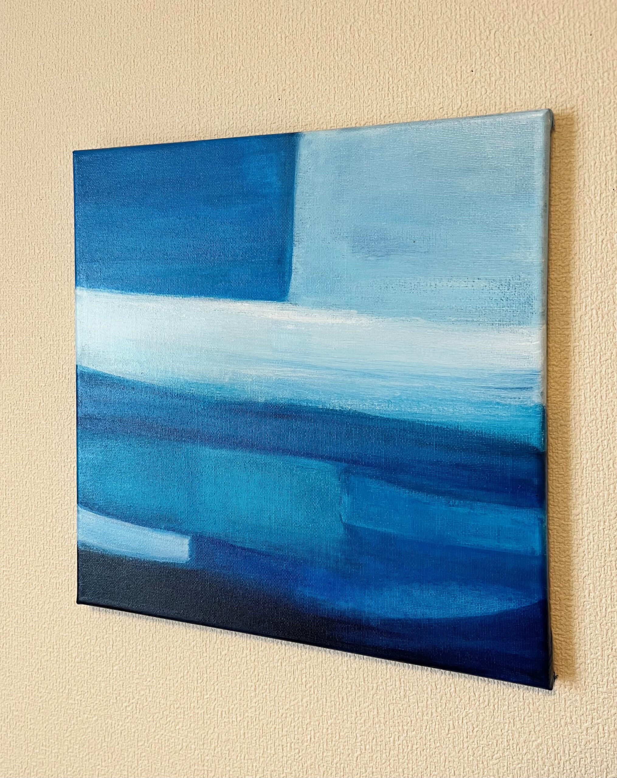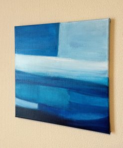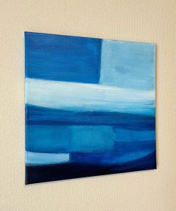 青を題材にした抽象画作品シリーズです。木のインテリアと相性の良い、鮮やかながらも落ち着いた青を配色しています。空間のアクセントになる作品です。